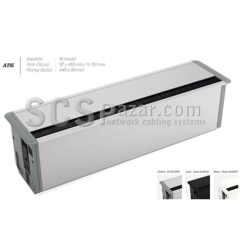 16 MODÜL MASA ÜSTÜ KAPAKLI PRİZ KUTUSU LÜX SERİ (slim ince kasa) ELOKSAL