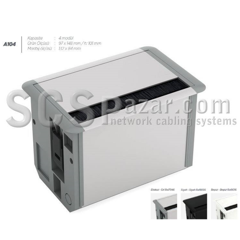 4 MODÜL MASA ÜSTÜ KAPAKLI PRİZ KUTUSU LÜX SERİ (slim ince kasa) ELOKSAL