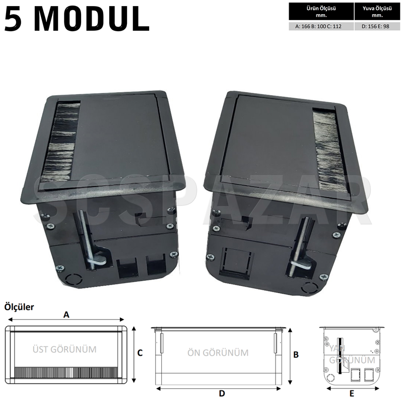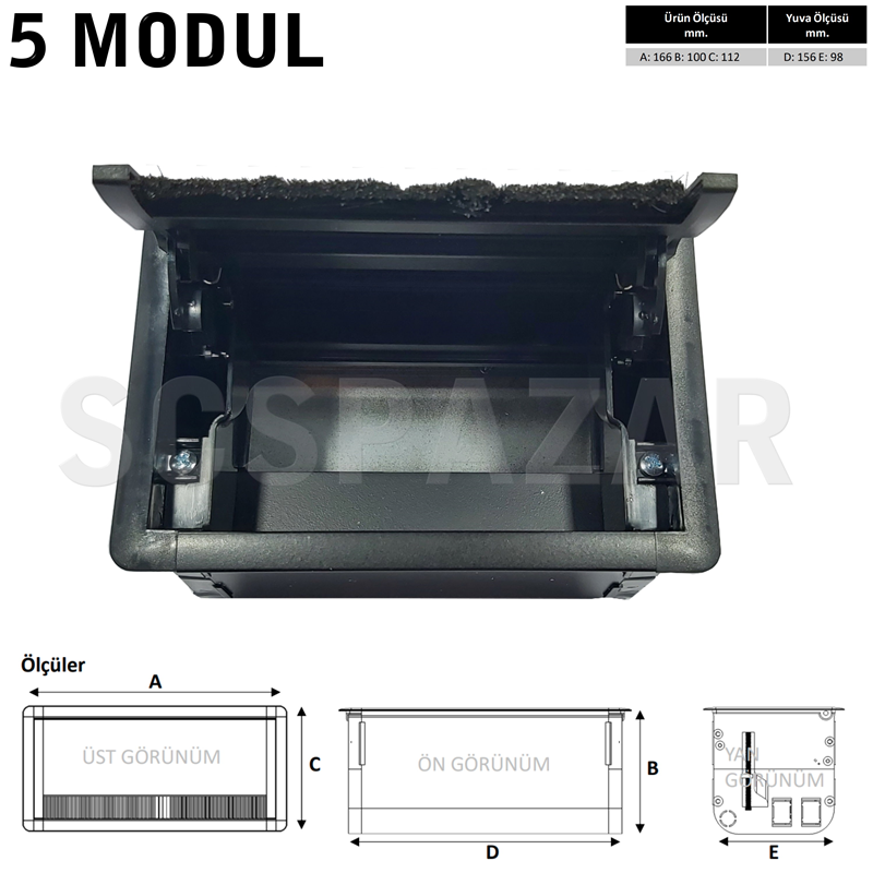 5 MODÜL MASA ÜSTÜ KAPAKLI PRİZ KUTUSU SİYAH