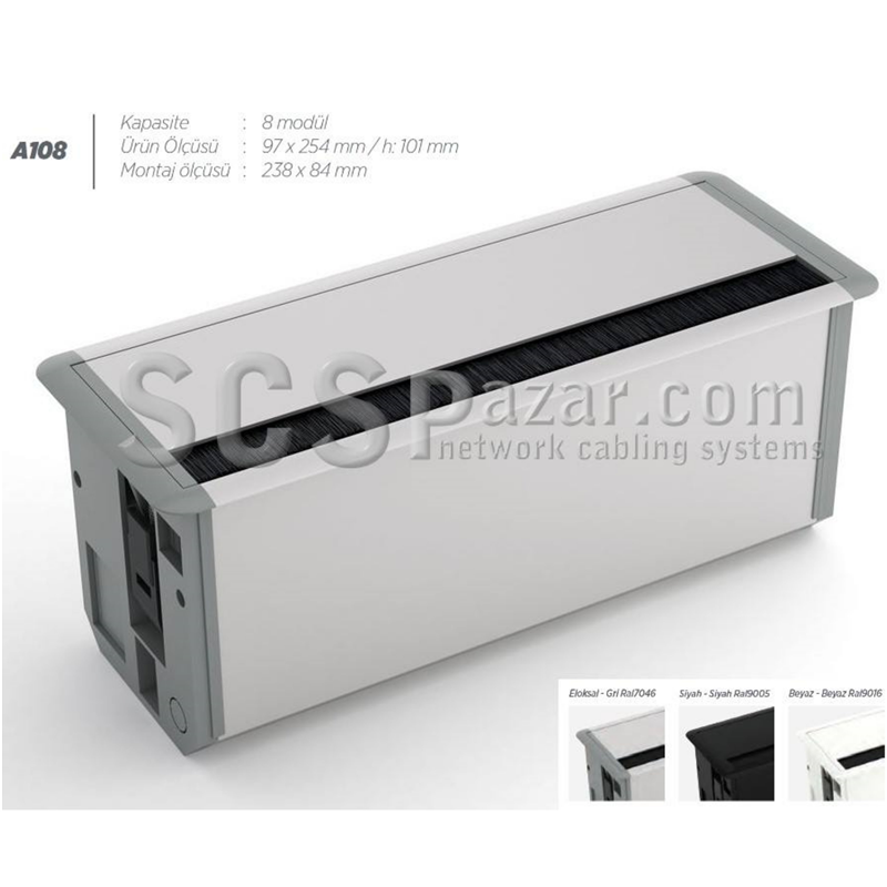8 MODÜL MASA ÜSTÜ KAPAKLI PRİZ KUTUSU LÜX SERİ (slim ince kasa) ELOKSAL