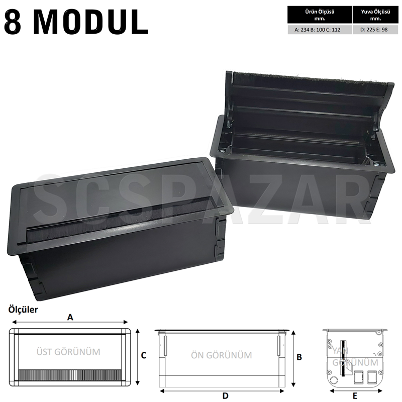 8 MODÜL MASA ÜSTÜ KAPAKLI PRİZ KUTUSU SİYAH