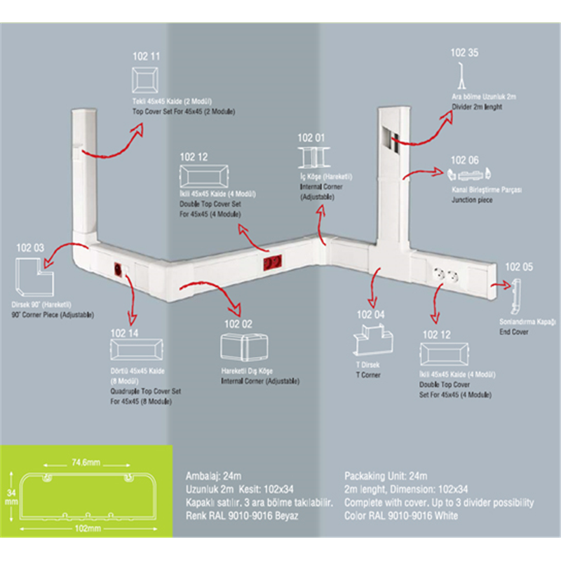 DLX 102 34 FOLYO KORUMALI KABLO KANALI 2 MT BOY