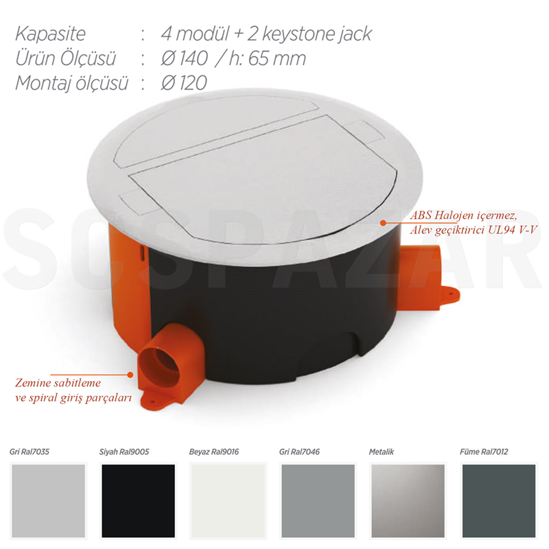 DÖŞEME ALTI GROMET PRİZ KUTUSU 120 LİK