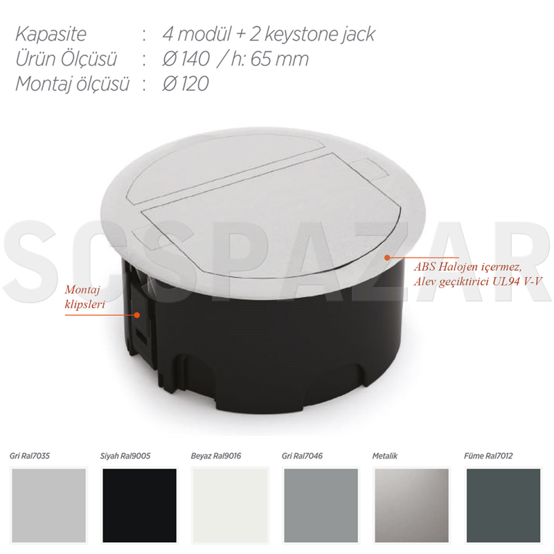 MASA GÖMME GROMET PRİZ KUTUSU 120 LİK